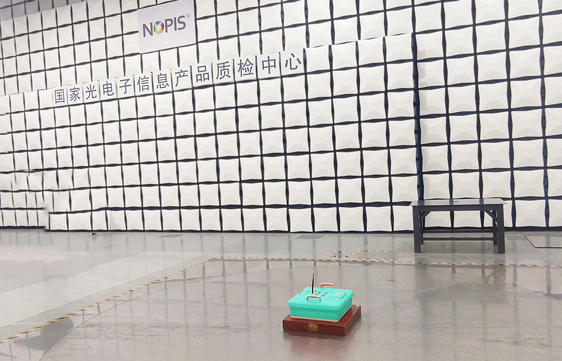 國(guó)家光電子信息產(chǎn)品質(zhì)檢中心十米法電波暗室電磁輻射檢測(cè)現(xiàn)場(chǎng)