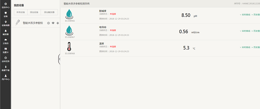 水質(zhì)檢測系統(tǒng):手機或APP查看,實時生成報表圖