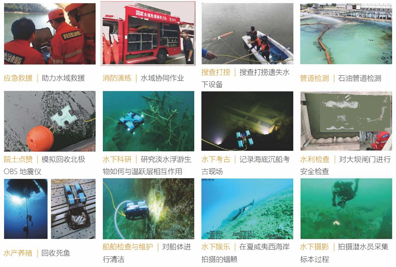 全系列支持300米級(jí)別的水深作業(yè)能力,基本覆蓋全部常用水深領(lǐng)域,無(wú)論是科研探索、水下考古等各種應(yīng)用領(lǐng)域,都可以輕松駕馭!