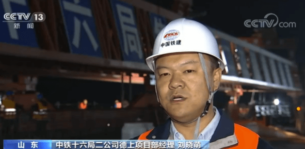中鐵十六局二公司德上項目部經理劉曉萌:考慮到既有單線德大鐵路預留復線的要求,我們要在五天時間架設8片48米特長箱梁,箱梁端頭是60度斜交,尤其是邊梁,精準落位時間長,風險的控制要求極高。