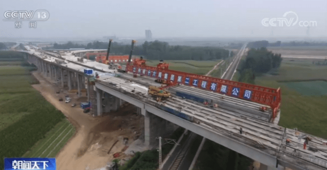 2020.9.26日凌晨,位于山東德州的德上高速與京臺高速連接線跨德大鐵路主橋,最后一片特長箱梁架設就位,這也是迄今為止架設的國內最長公跨鐵箱梁。
