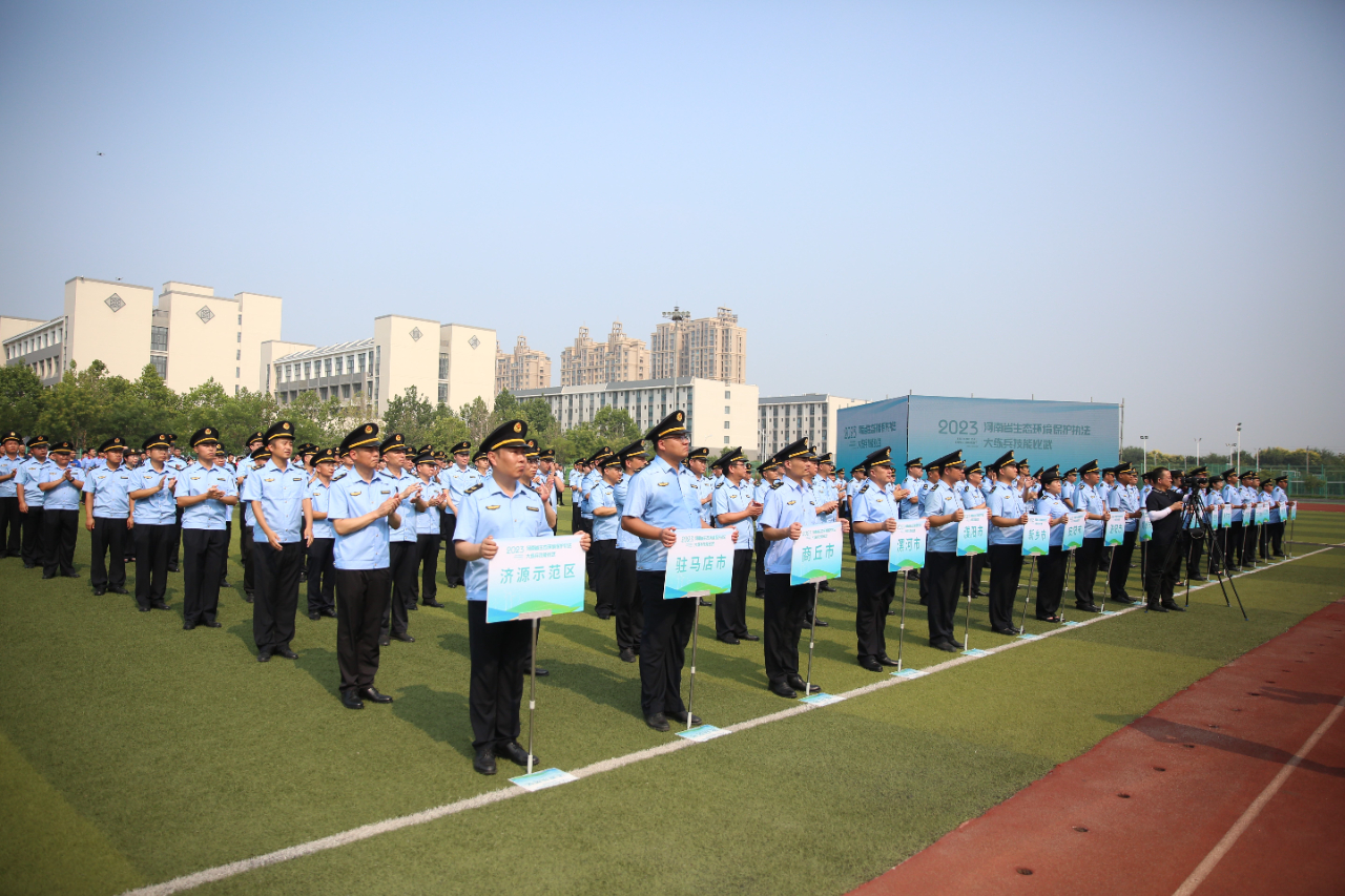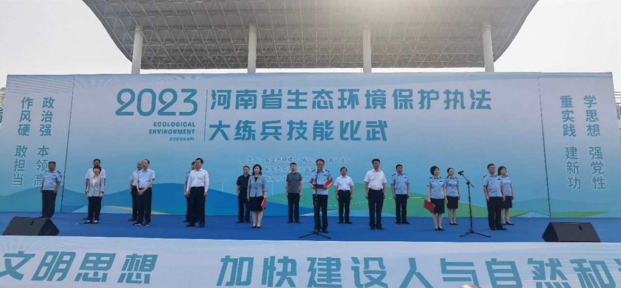 8月17日上午,由河南省生態(tài)環(huán)境廳、省公安廳、省司法廳聯(lián)合主辦的2023年全省生態(tài)環(huán)境保護(hù)執(zhí)法大練兵技能比武活動(dòng)在新鄉(xiāng)拉開了帷幕,來(lái)自全省的百名執(zhí)法精兵齊聚比武擂臺(tái),蓄勢(shì)聚能、整裝待發(fā)。此次比武共設(shè)置主題教育演講比賽、知識(shí)競(jìng)賽,無(wú)人機(jī)操作技能、污染源自動(dòng)監(jiān)控“打假”、VR現(xiàn)場(chǎng)模擬執(zhí)法、執(zhí)法新裝備運(yùn)用6項(xiàng)比武科目。活動(dòng)的舉辦旨在提升全省生態(tài)環(huán)境執(zhí)法人員綜合素質(zhì)、鍛造過硬的執(zhí)法隊(duì)伍,進(jìn)一步提升生態(tài)環(huán)境執(zhí)法人員來(lái)之能戰(zhàn)、戰(zhàn)之能勝的實(shí)戰(zhàn)能力。