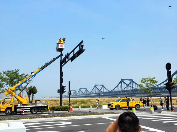 高桿燈故障搶修:高空作業(yè)車精準(zhǔn)對(duì)接垂掛燈頭,全程實(shí)施四級(jí)安全封控,15分鐘完成燈具更換,確保夜間照明系統(tǒng)穩(wěn)定運(yùn)行,體現(xiàn)高空作業(yè)的規(guī)范化與安全性。