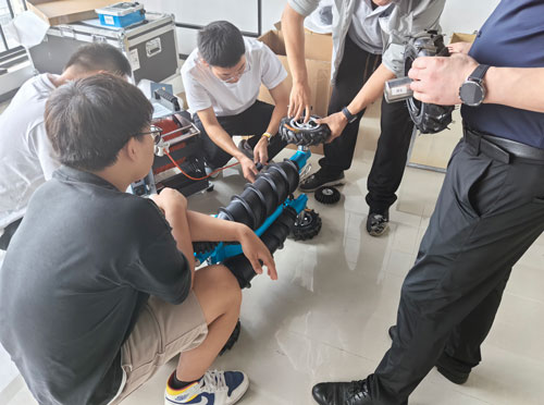 在監(jiān)測(cè)能力上,機(jī)器人搭載的360°旋轉(zhuǎn)云臺(tái)高清攝像機(jī)可實(shí)現(xiàn)數(shù)字高清成像,既能遠(yuǎn)距離捕捉水面漂浮物、非法排污口等顯性污染問(wèn)題,也能清晰記錄管渠內(nèi)部裂縫、積淤等隱蔽隱患,為水質(zhì)溯源提供精準(zhǔn)影像數(shù)據(jù)。臨汾市生態(tài)環(huán)境局水生態(tài)環(huán)境科負(fù)責(zé)人表示:"過(guò)去對(duì)汾河支流管渠的排查需要人員涉水作業(yè),不僅效率低,還存在安全風(fēng)險(xiǎn)?,F(xiàn)在機(jī)器人能深入這些危險(xiǎn)區(qū)域,讓監(jiān)管觸角延伸到每一個(gè)關(guān)鍵節(jié)點(diǎn)。"