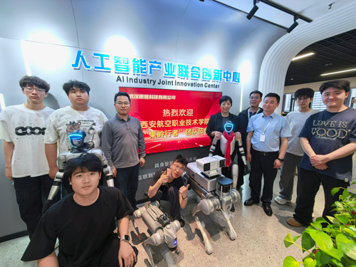 此次西安航空職業(yè)技術(shù)學(xué)院“果嶺行者”團(tuán)隊(duì)蒞臨考察交流,不僅讓團(tuán)隊(duì)深入了解了導(dǎo)覽人形機(jī)器人、巡檢四足機(jī)器人的前沿技術(shù)與行業(yè)應(yīng)用現(xiàn)狀,也為雙方搭建了高效的校企協(xié)同平臺,明確了產(chǎn)教融合的具體實(shí)施路徑。