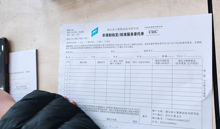 第一步,我們需將探地雷達(dá)設(shè)備帶到省計量院,到大廳按要求填寫《檢定和校準(zhǔn)服務(wù)委托單》。